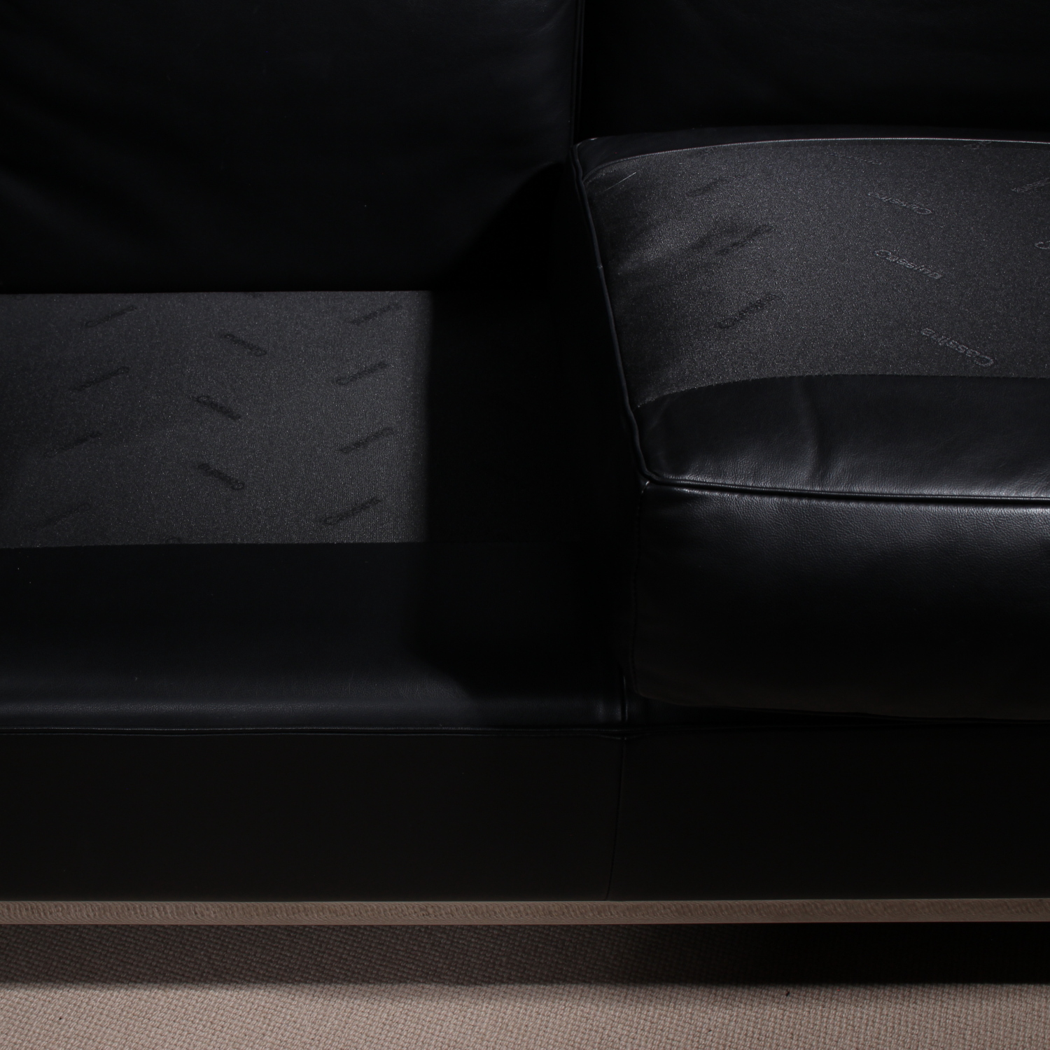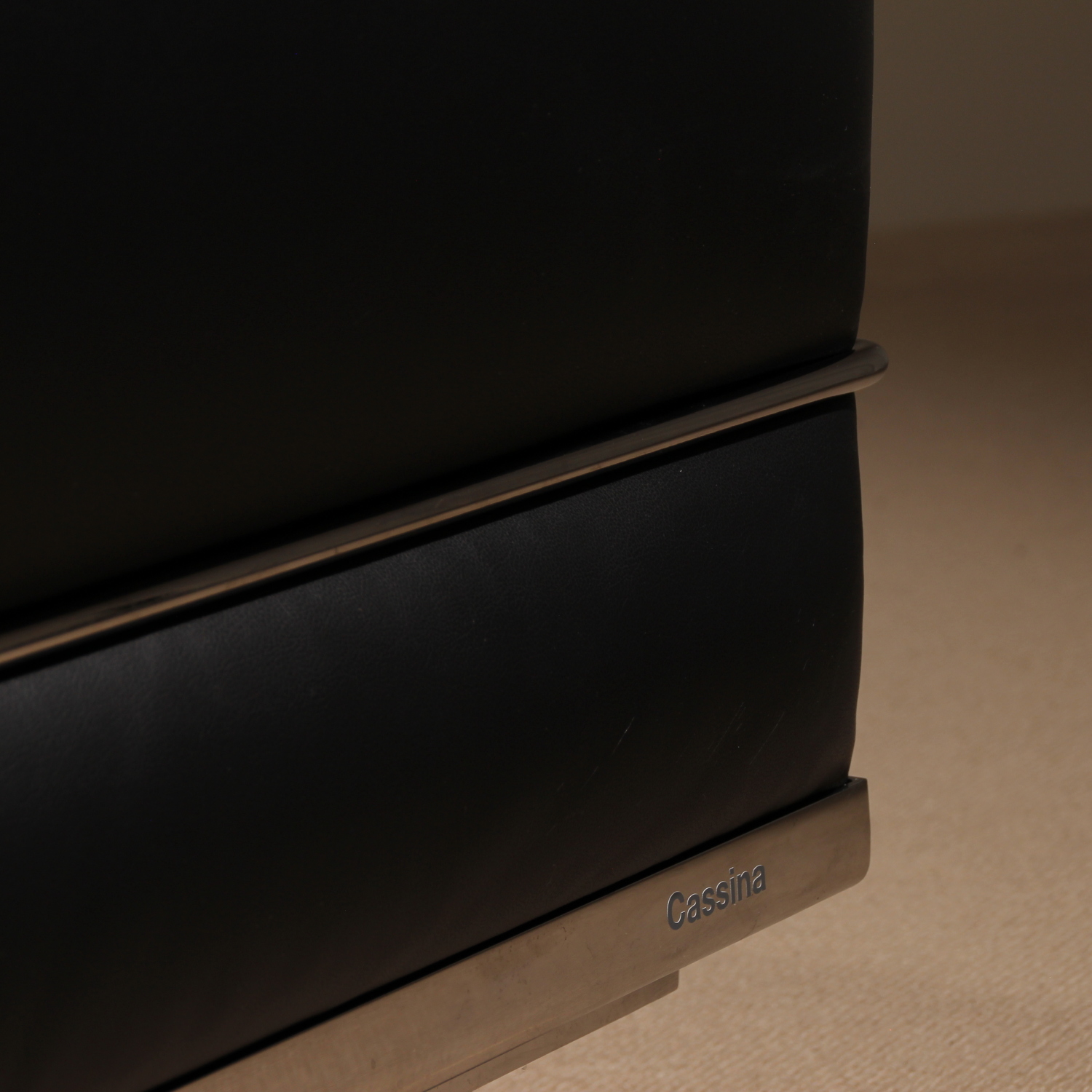 ​The LC2 sofa is the spacious extension of the iconic armchair and a masterpiece of modernism. The architectural precision of the chromed tubular steel frame provides the perfect setting for the loose cushions in elegant graphite black. As a certified original by Cassina, the sofa bears the corresponding signature and individual serial number 185833 on the frame. This model stands out for its clear, minimalist lines and can be perfectly combined with the matching pair of armchairs to create a harmonious seating group.